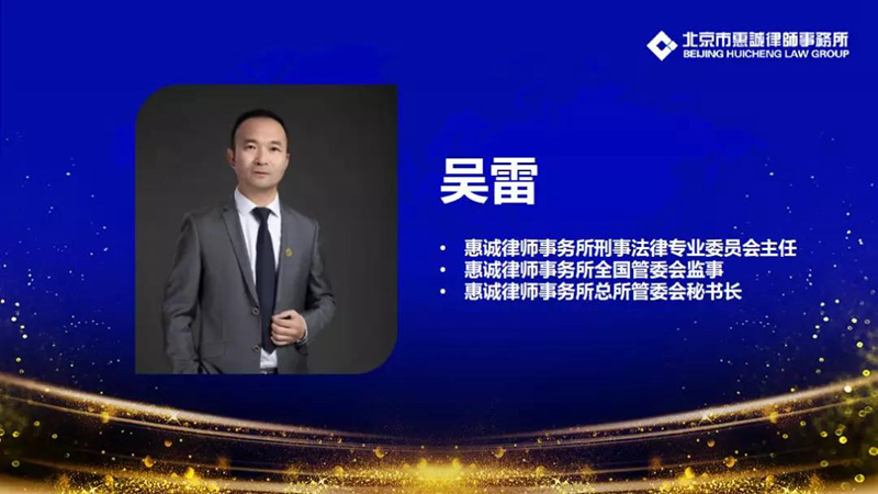 “企业刑事法律服务”惠诚全国管委会监事、惠诚总所管委成员、刑辩大律师 吴雷 律师