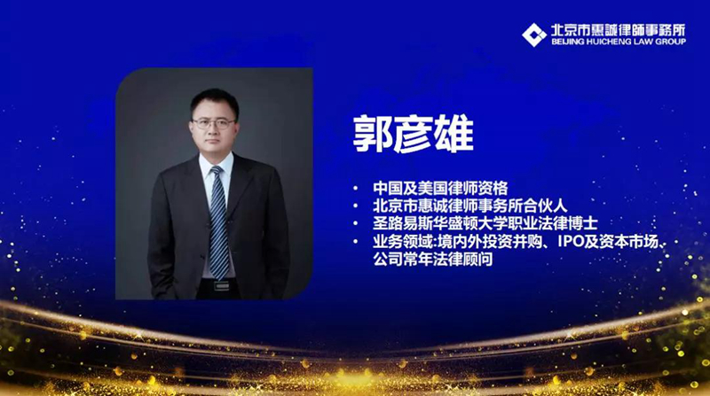 “企业投资并购风险防范”惠诚总所管委会成员、合伙人、跨境投资并购律师郭彦雄 律师